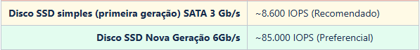- Desempenho de IOPS recomendado para uso de volumes com SSD: